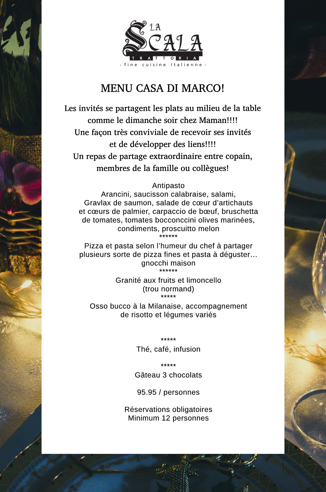 Préparé par LES CHEFS Bruno Clermont, Youssef Alaoui et Marc Antoine Munoz, propriétaire.